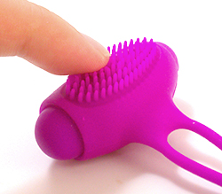 高級シリコン素材と高性能モーターを搭載した乳首ローター「プリティラブ ニップルハングバイブレーター」。中央のリングに乳首を通し、シースルーのストッパーでリングを絞って装着します。リング下に付いているローターのスイッチを入れれば強力振動し、乳首正面への刺激ではなく、挟み込んで乳首全体を刺激する事ができます。またローターを搭載したカバーには無数のツブツブが付いているので、その部分を乳首にあてて乳首正面からの刺激をも楽しむこともできます。素材には高品質のシリコンを使っているので、柔らかく肌触りも良く、長時間プレイできす。ローターの着脱もできるので、シリコン本体は丸洗いが可能となり、簡単にお手入れができます。