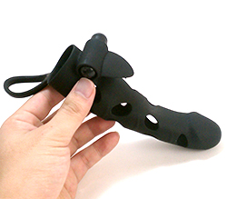 装着するだけで竿が長くなり、長時間のプレイが可能となり、尚且つブルブルと震えるシリコン製のペニススリーブ「プリティラブ バイブレーティングペニススリーブ」!ペニススリーブを装着することにより約1.5cmサイズアップするので、パートナーへいつもより奥に届くような挿入感を与えることができます。竿全体を覆うボディは持続性をアップしますが、ところどころに穴が開いていて、通気性と挿入感を損わずに長く楽しむことができます。根元には高性能振動ローターを装着でき、ブラシがブルブルと震えてクリトリスに刺激を与え絶頂へと導きます。装着時はボールストラップでしっかりと固定できるので、プレイ中にずれる心配もありません!